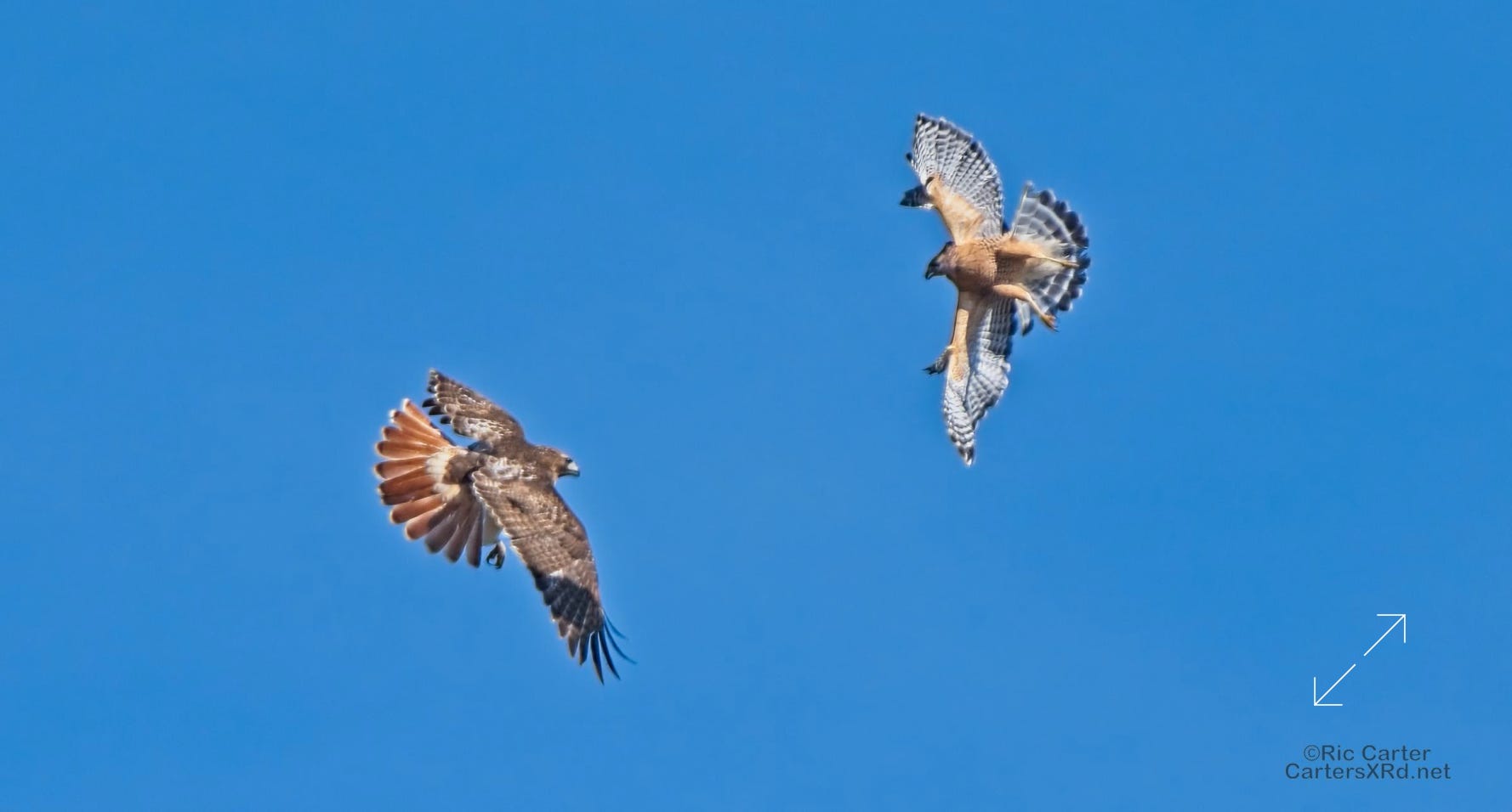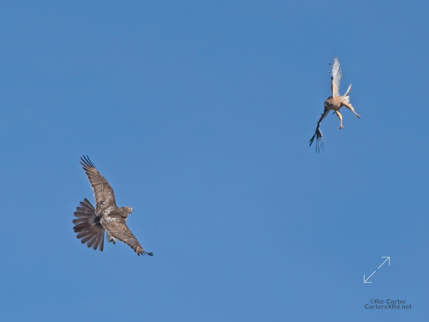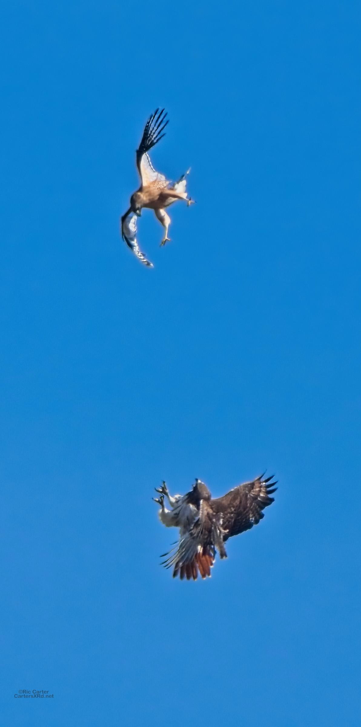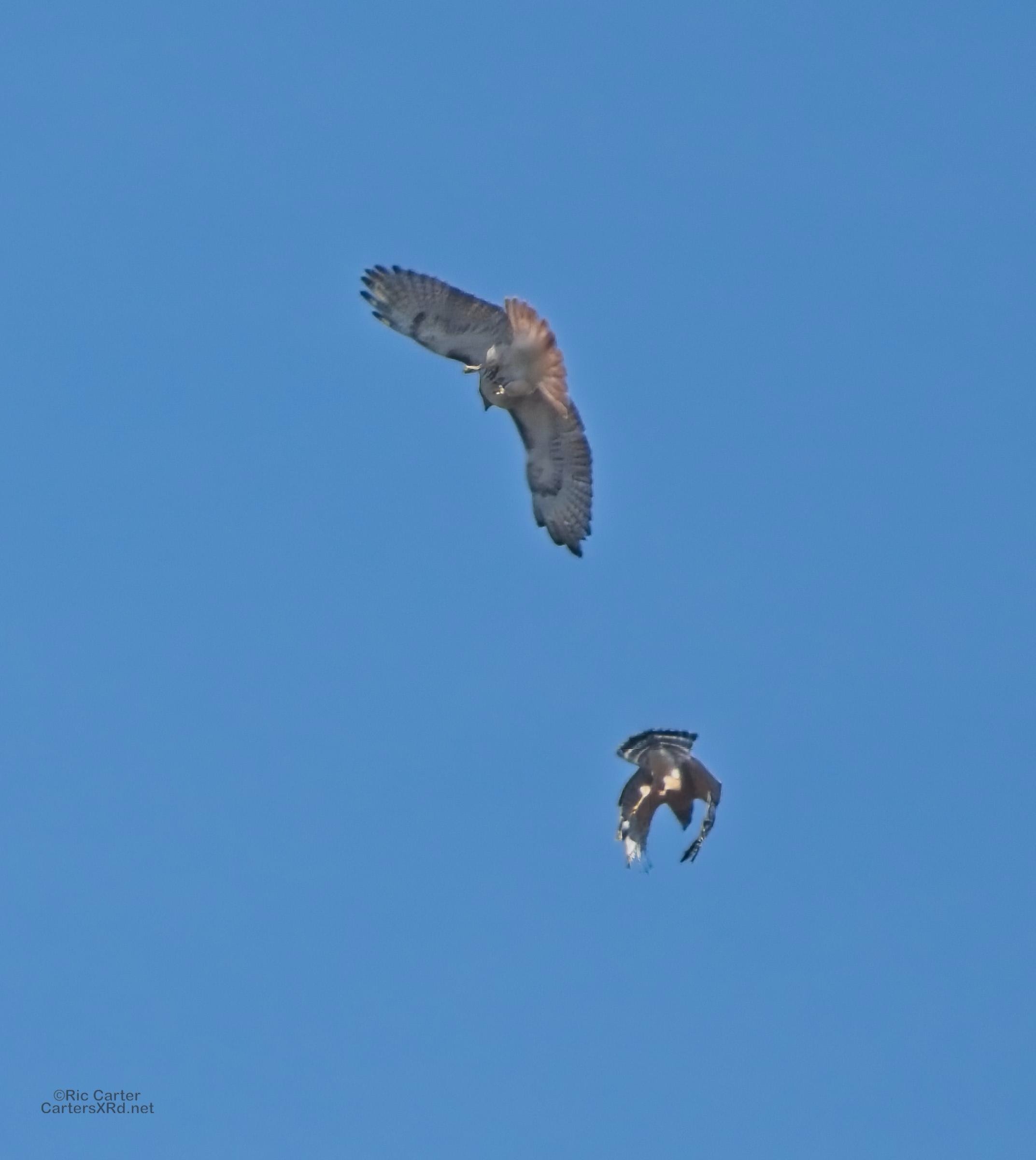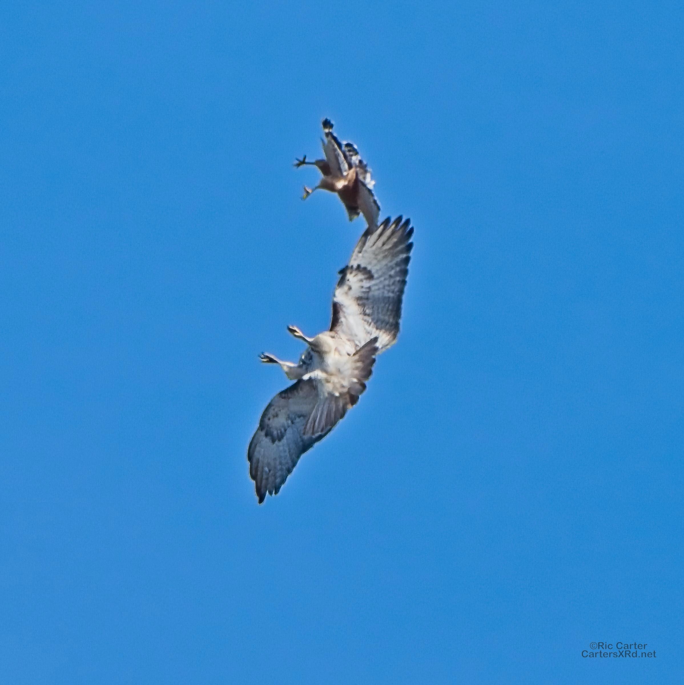 I was going to practice drone flying the other day. As I stopped the car and was getting unpacked, I noticed a low flying red-tailed hawk headed toward me. I immediately decided not to fly drone (you just DO NOT fly drones around birds) and grabbed the telephoto in hopes of getting a few pictures of him (see Birds of Prey Week 6). He was not far past me when I heard a hawk cry. It was not him. There was a red-shouldered hawk approaching from the opposite direction. They were clearly working out the open field territory dominance there. I expect they will be taking turns as they have for the last few years. I wish these were sharper, but the action takes place 500-900 meters away and I had to work hand-held.