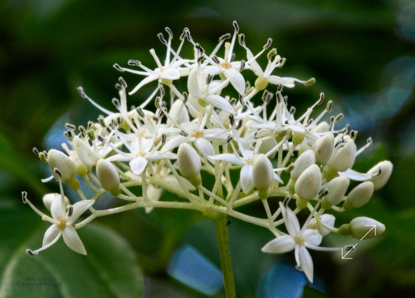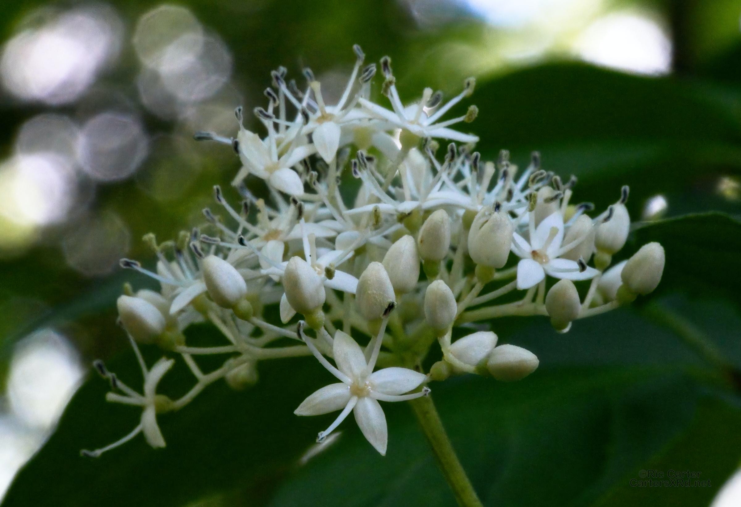 Swamp dogwood is a swamp shrub with clusters of blossoms. They show blue berries later in the year.