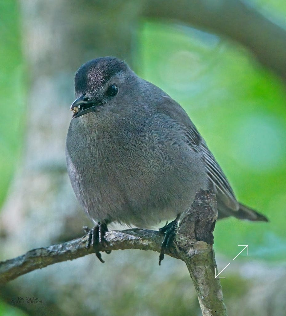 Birds have a crop for grinding the tough foods they eat. When something is too tough, birds can cough up “pellet” and spit them out. I caught this catbird regurgitating what appears to be a seed in May 2023.