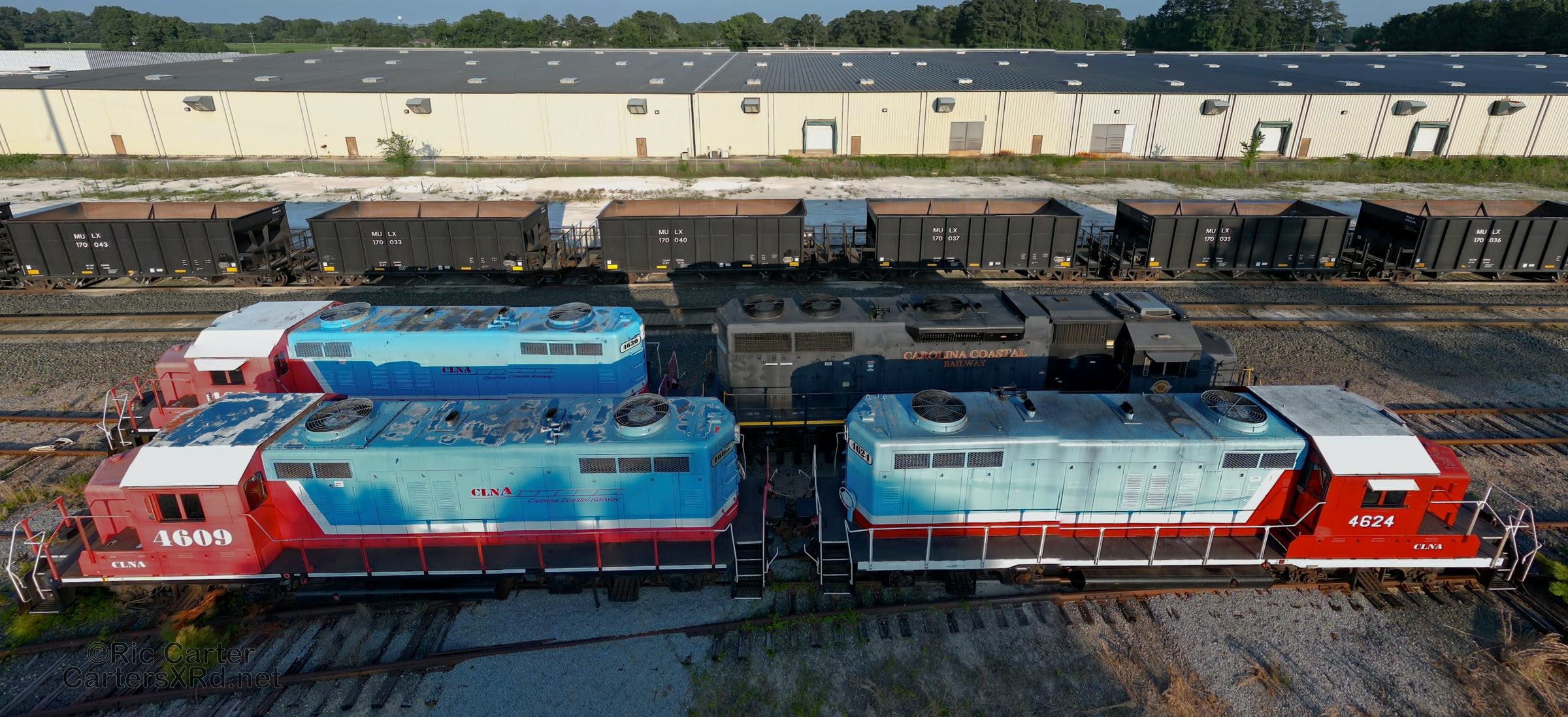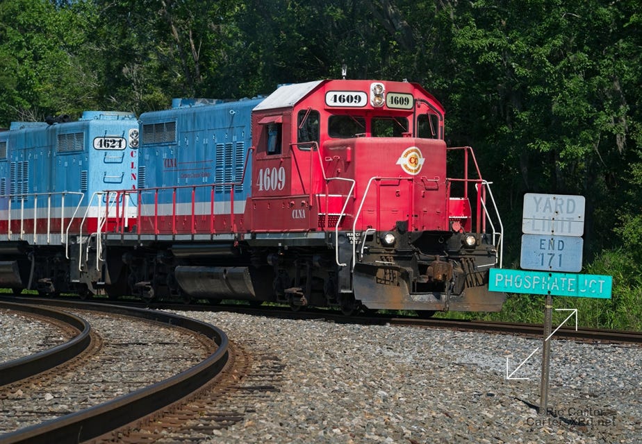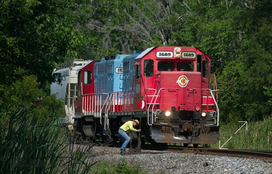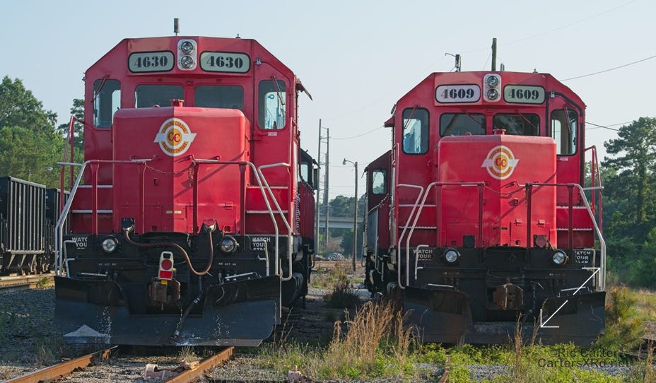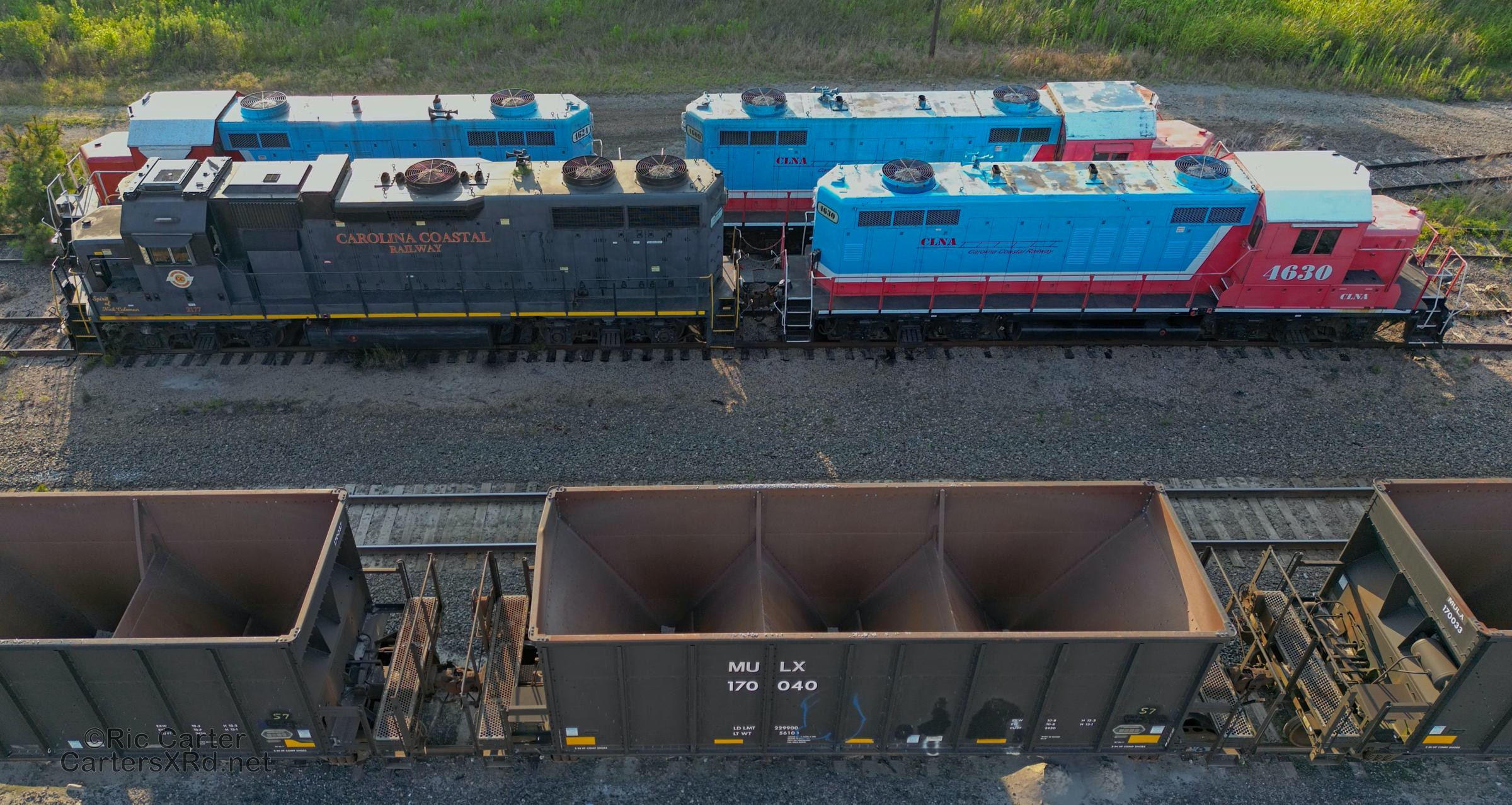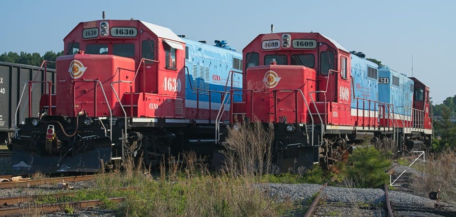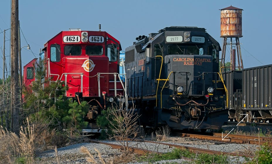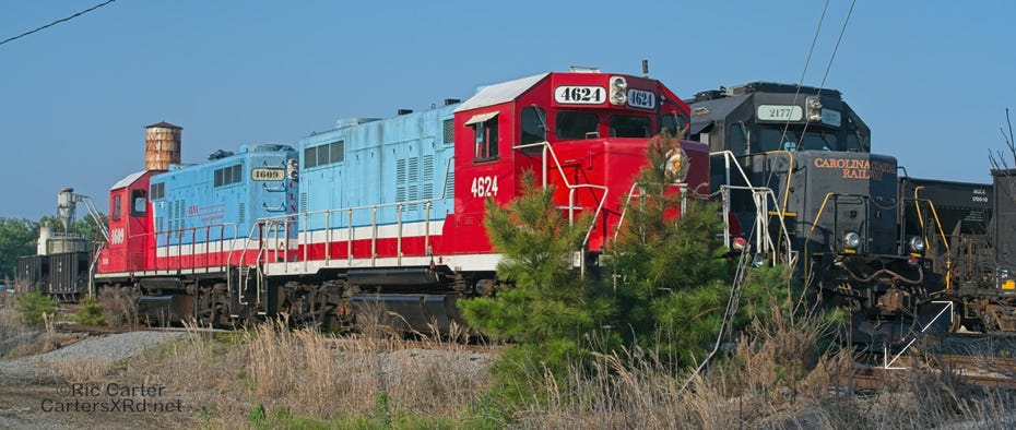All of this week’s set is from four locomotives. It was a rare overnight Chocowinity gathering of so much power from the local shortline. Here are the attendees and 119 making an early departure from the wye.