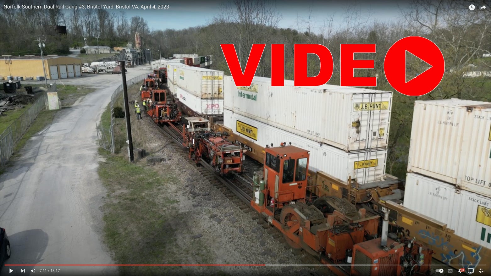 A couple of train videos from Bristol TN/VA. The top one is a lengthy freight waiting for clearance to enter Bristol Yard. The second is Norfolk Southern’s Dual Rail Gang working the east end go Bristol Yard.