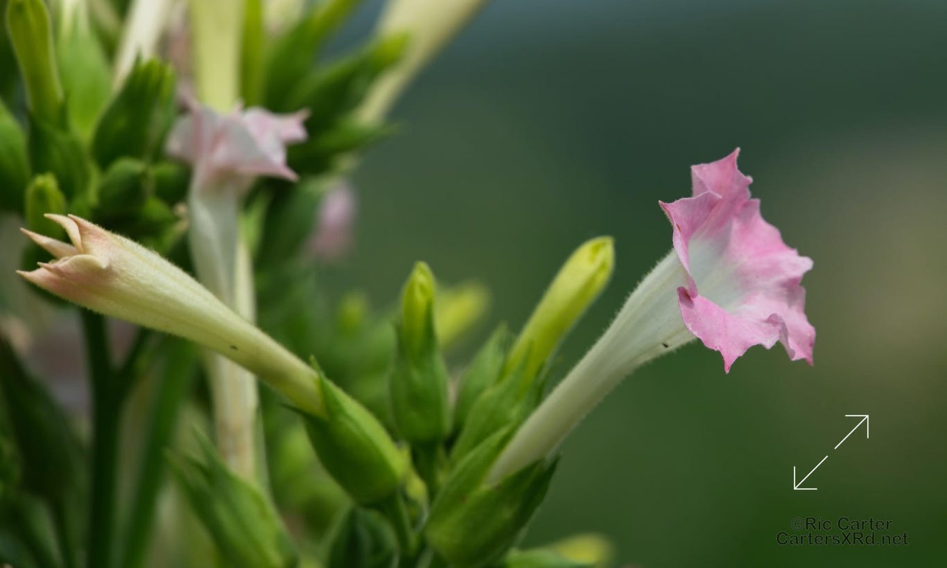 Tobacco flowers don’t remain visible for long. They are picked off rather quickly as most of the field has bloomed. It’s not because they are coveted or fragrant. It is only that they are a nutrient drain on a plant which is meant to maximize it leaves. .