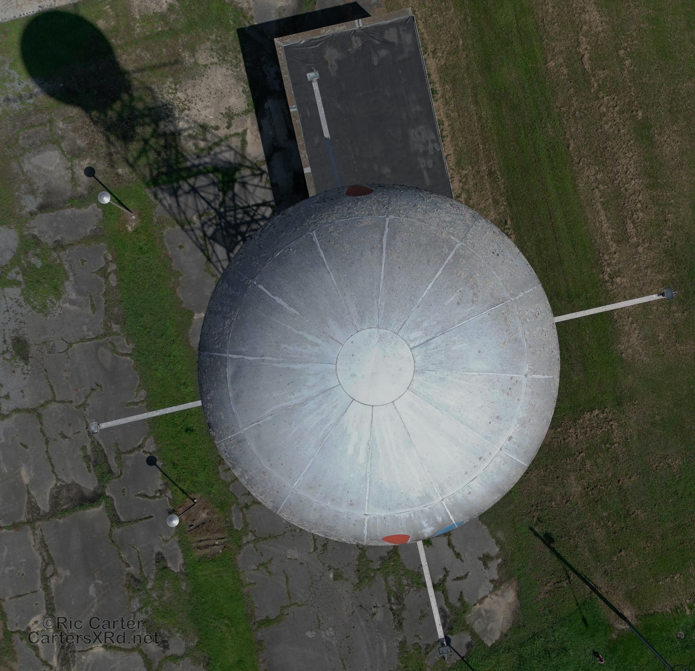 WITN used to be headquartered in beautiful downtown Chocowinity NC, even if everything read Washington. The office and studios are now gone, but the trace of their footprint remains. Former employees can likely spot their old spots by studying the slab that is slowly being reclaimed by nature. Only one beacon of the station remains — the doppler radar sphere atop of steel tower.