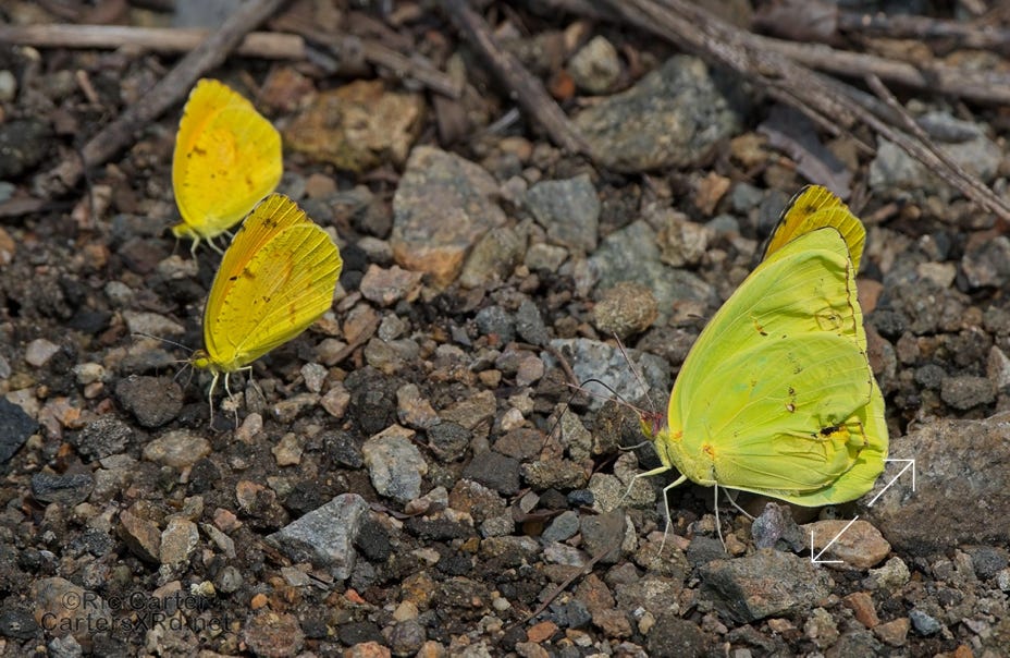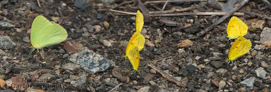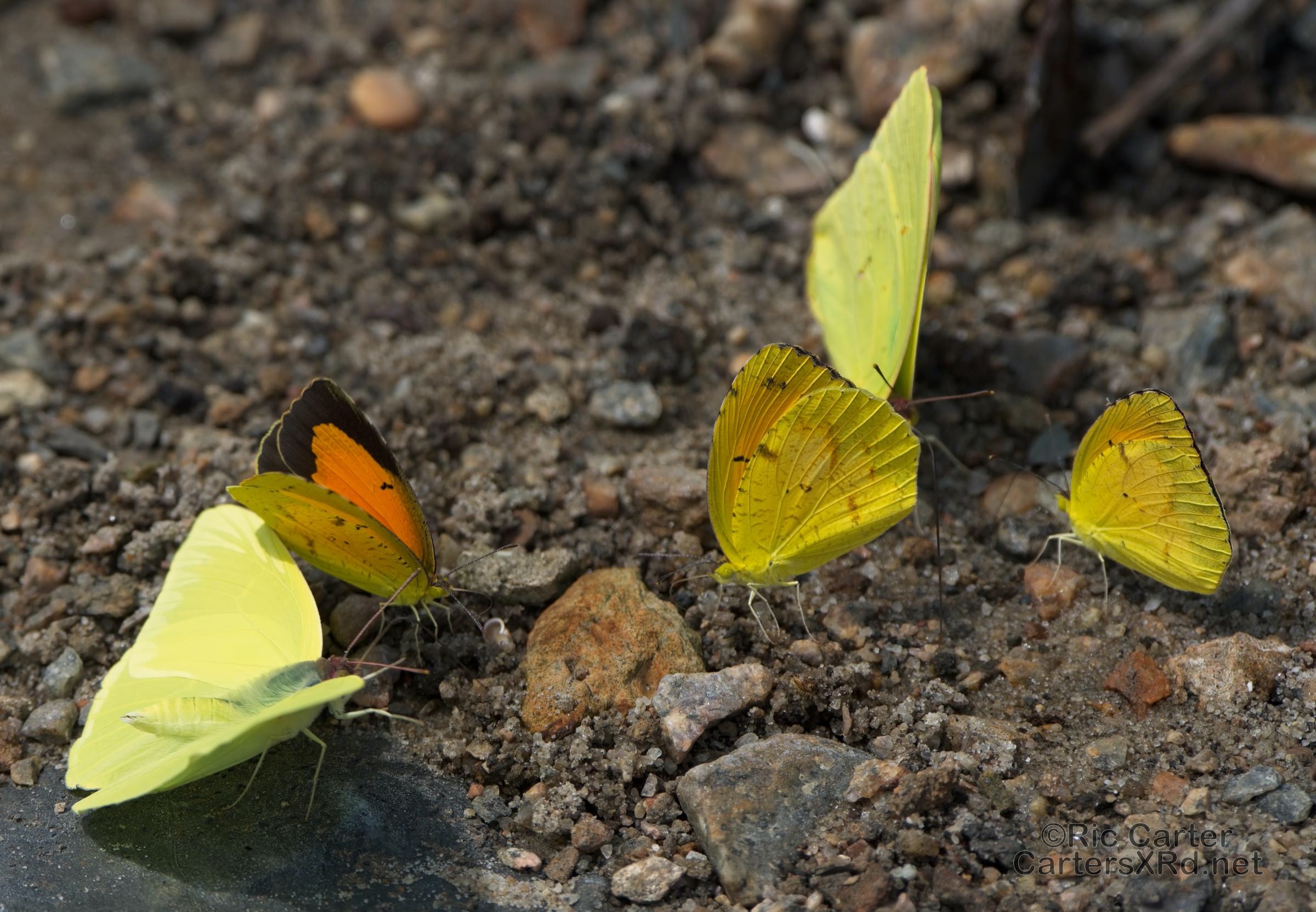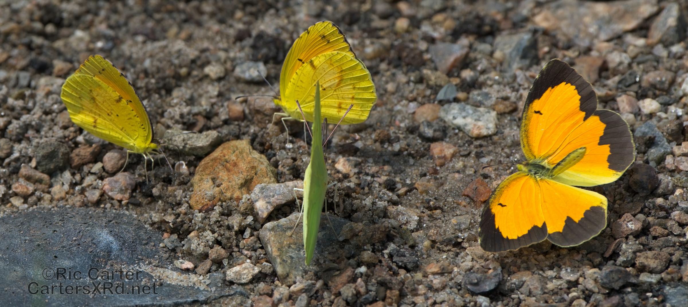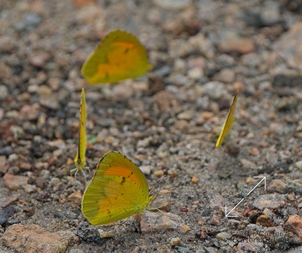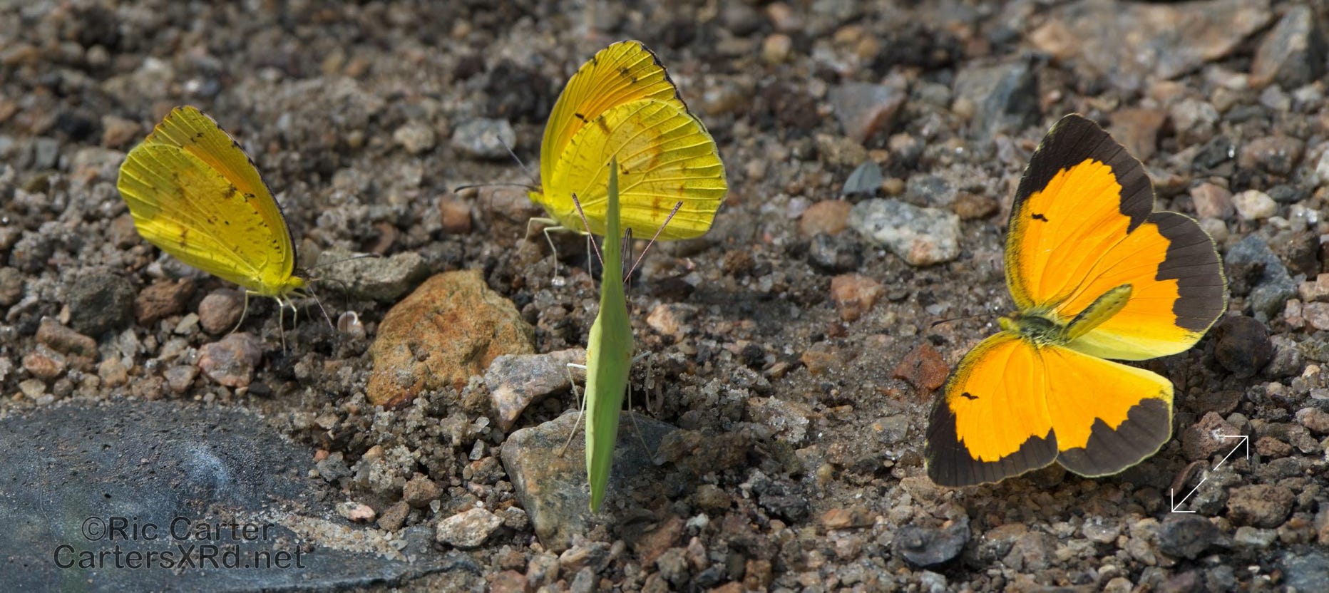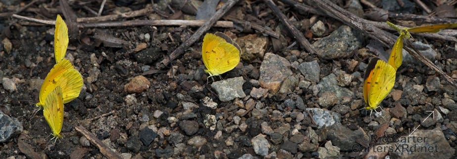 I found this watering hole for a variety of Sulfurs last week. A whole society in the bottom of a ditch along a railroad right-of-way. Keep looking down.