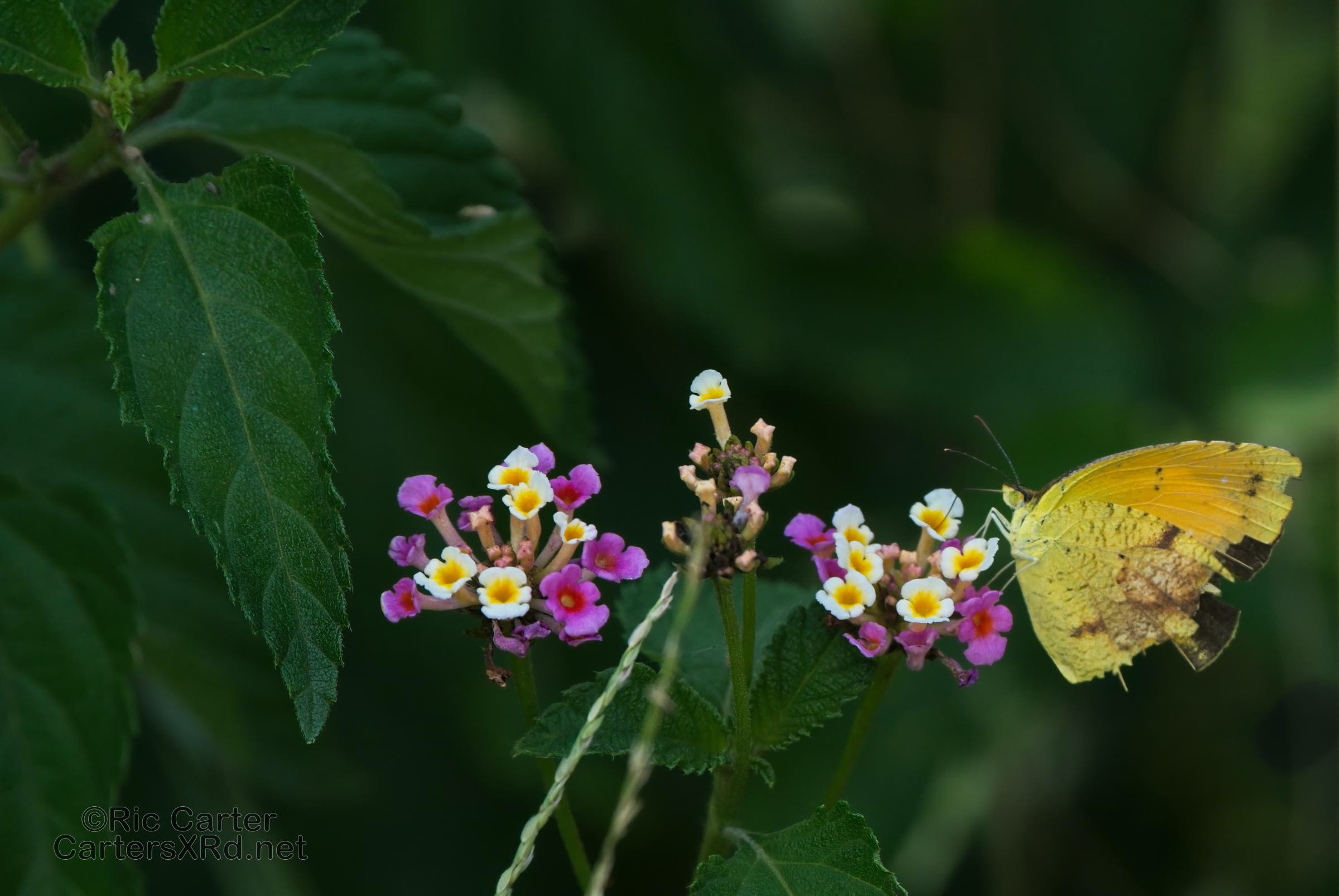 Sulfurs love ditches and the tiny vervain flowers they find there. Find the slow road and you can see them swarming along those country roads -the ones less taken.