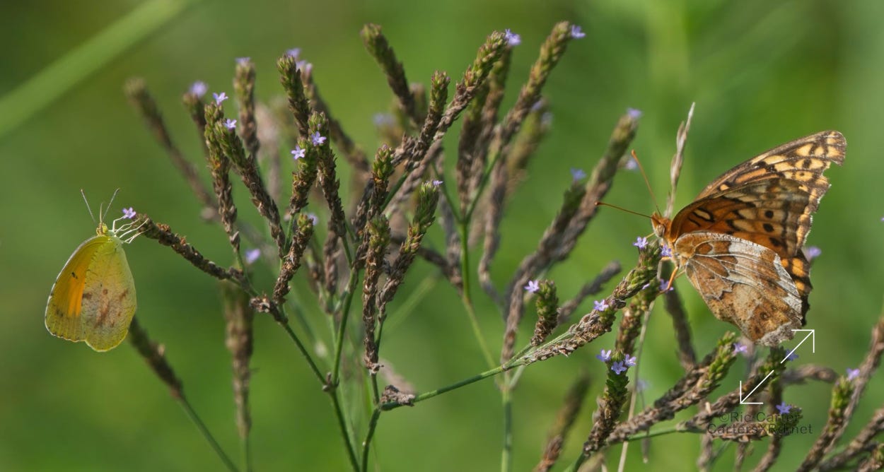 The ditches are probably the busiest part of our country roads right now. Here is the butterfly action in one spot over near Chocowinity.