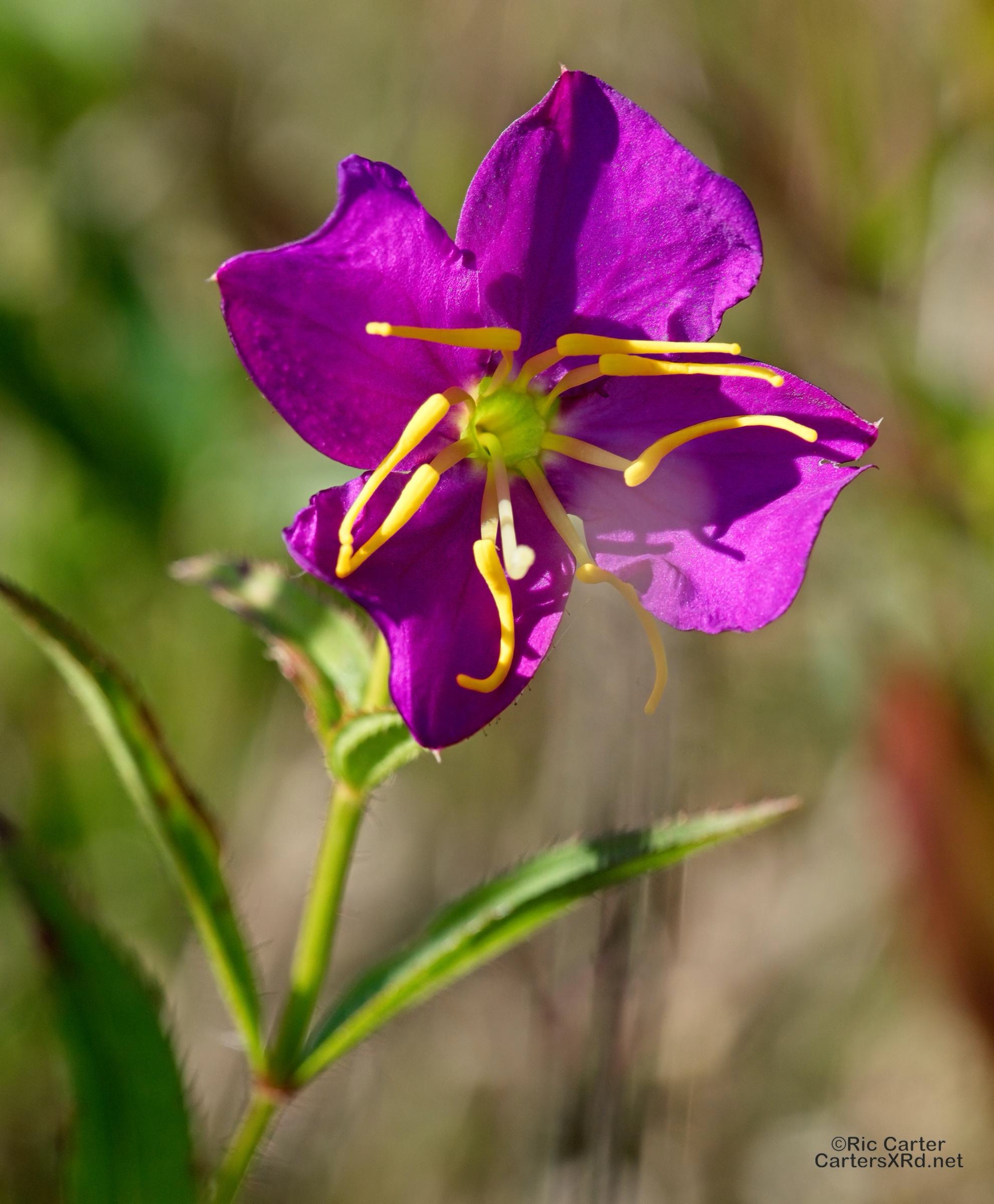 The meadow beauty is reasonably common swamp blossom that may be found in swamp edges and ditches around here This particular one is in the crop at VOA Gameland.