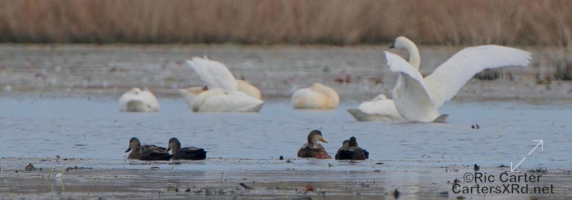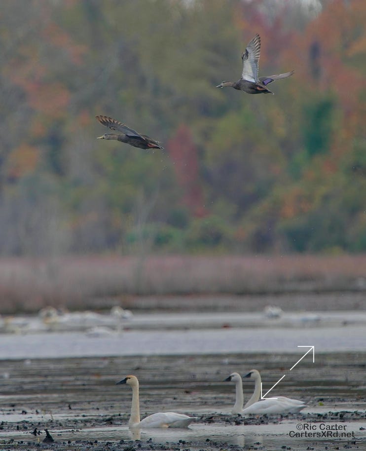 I made a quick trip to Pungo Lake last week to see if the swan were in yet. There were a few hundred on the corner impoundment. Of course, other waterfowl joined them there. These pictures were taken November 15, 2023.